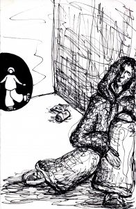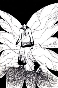 je meurs chaque hiver et à chaque fois je pense que c’est pour toujours. Un projet pour survivre au mois de janvier en me créeant un univers imaginaire qui n’a pour inspiration que mes rêves/pensées/sentiments. Après avoir fini le carnet de dessin, j’ai décidé d’en faire des reproductions pour des gens interessés qui s’identifient avec les dessins. J’envisage de continuer à faire des éditions.