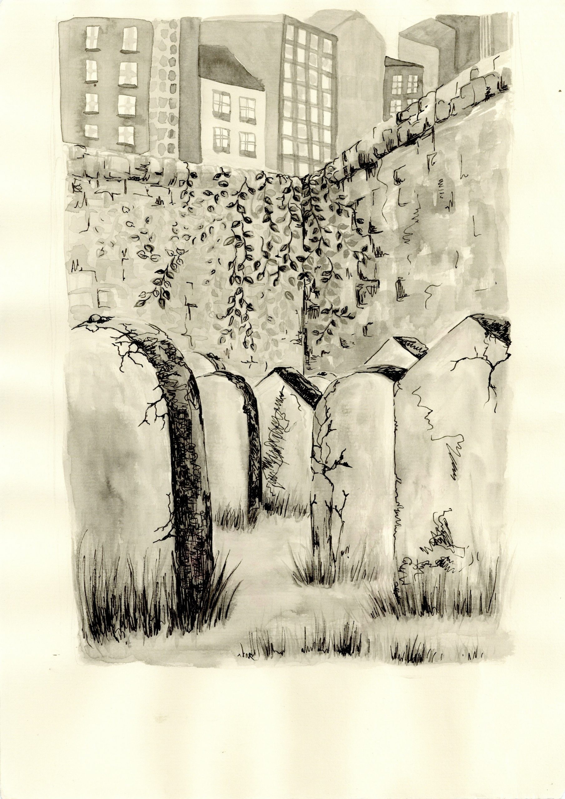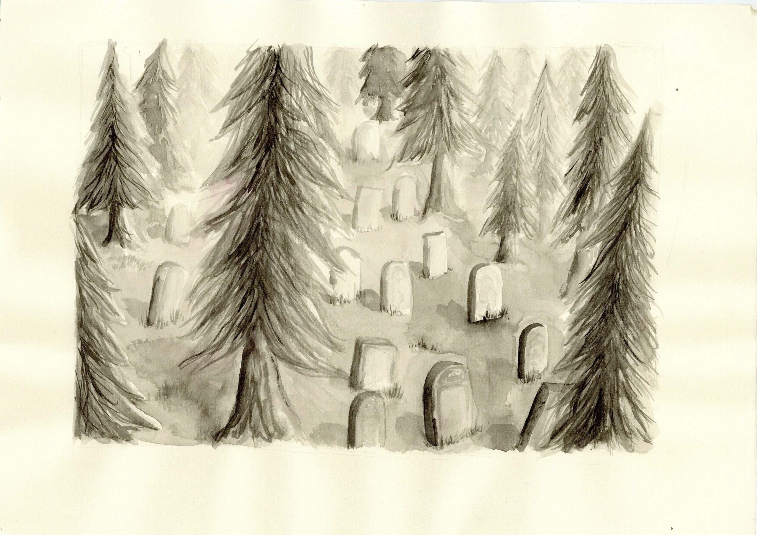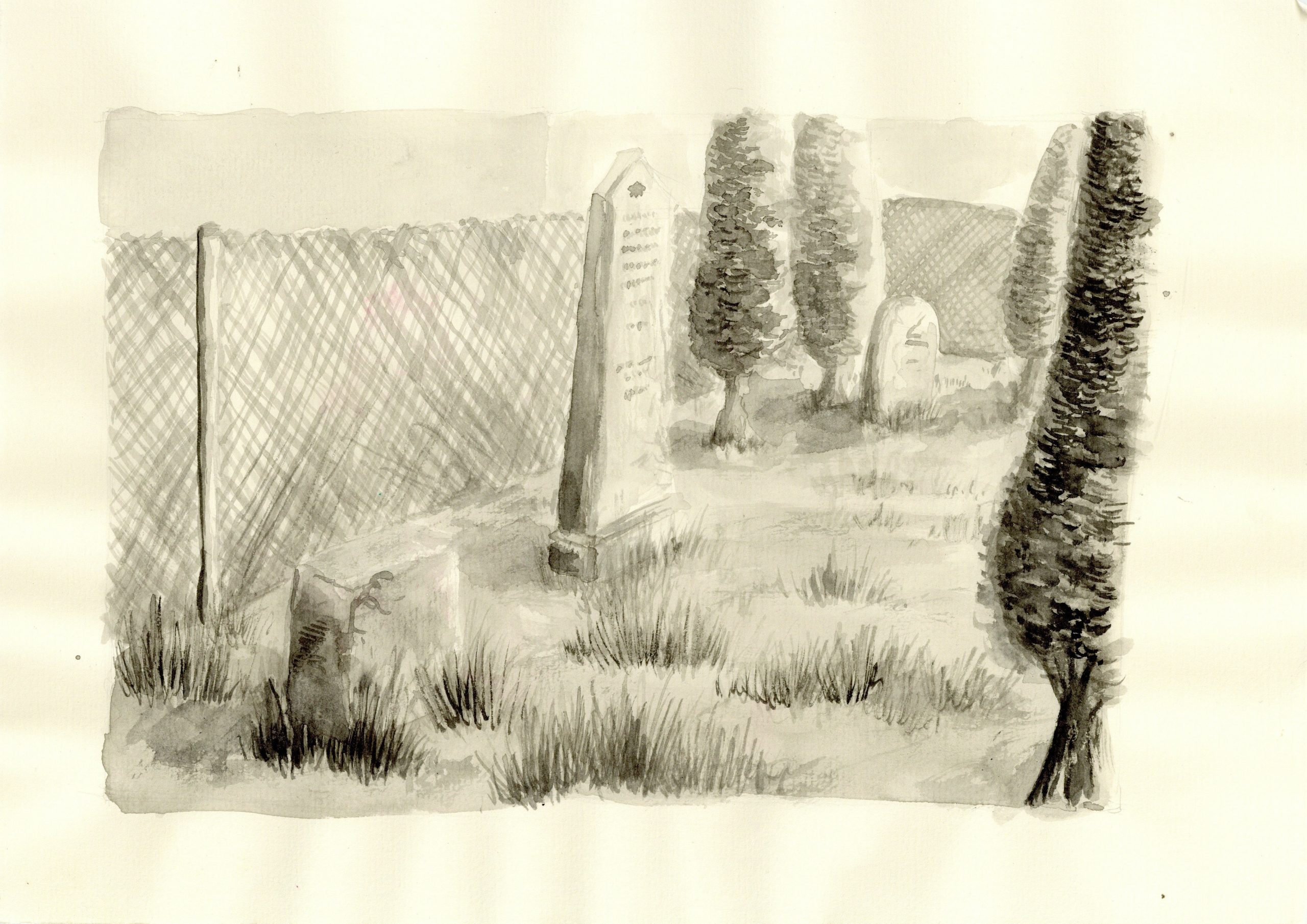 une série de cimetières imaginaires. Les cimetières sont pour moi des lieux éternels de mémoire et de la vie, que j’aime beaucoup fréquenter. Dans cette série je crée des lieux imaginaires pour rendre hommage aux personnes sans tombe, dont la mémoire est donc en danger.
