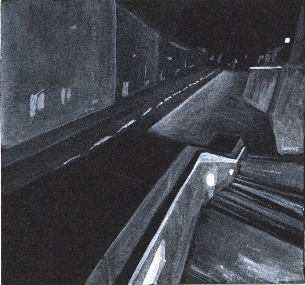 mon environnement, des non-lieux où je passe toujours en rollers. En les peignant, ils deviennent des lieux.